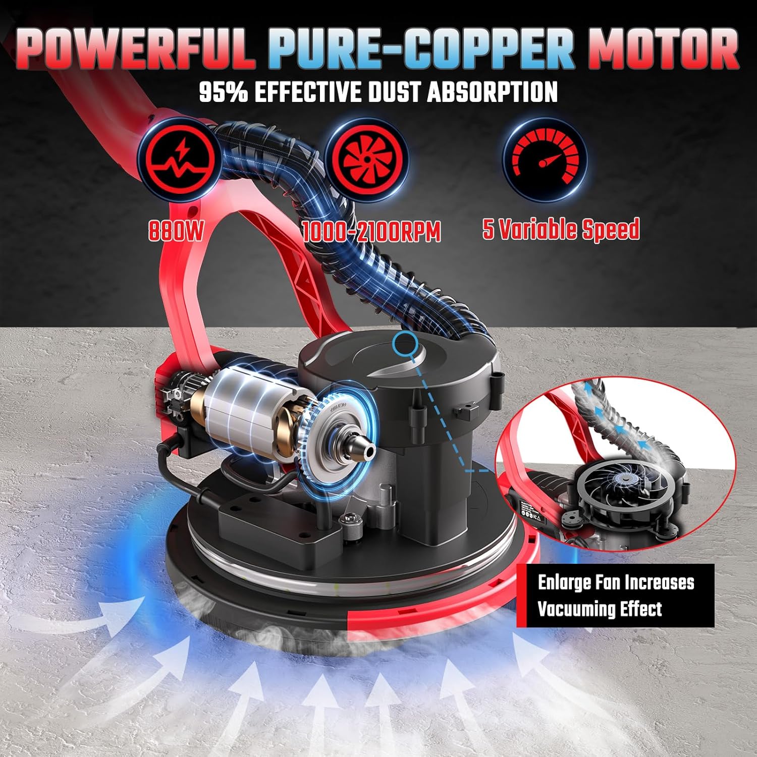 This isn’t just another sander – it’s a professional-grade tool that delivers exceptional results. Featuring a robust 7.33-Amp 880W motor, this electric drywall sander provides consistent power that makes wall smoothing a breeze. The variable speed control (1000-2100 RPM) allows for precise work on different surface types, giving you complete control over your finishing process.
