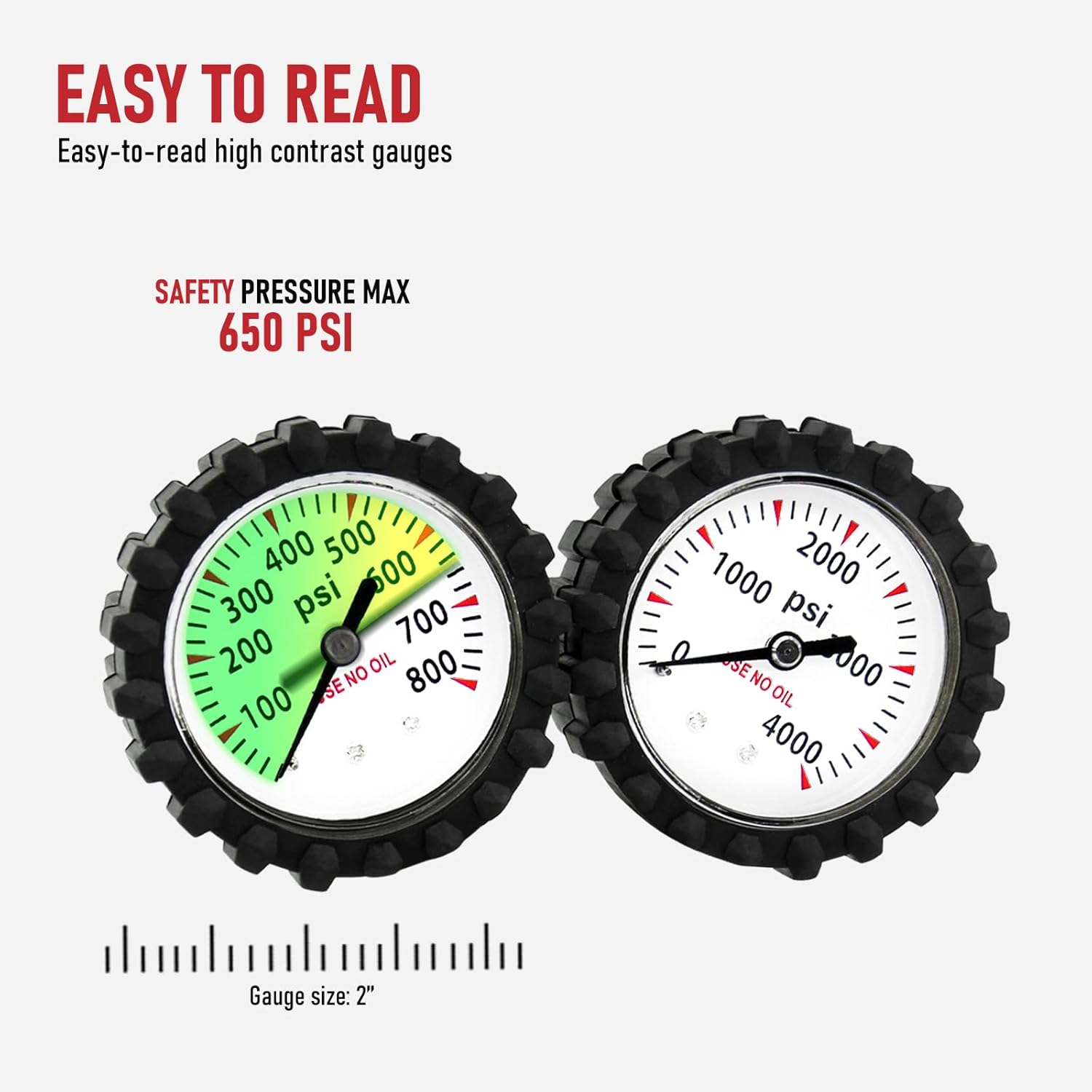 * **Dual Gauges**: Easy-to-read cylinder pressure and delivery pressure gauges