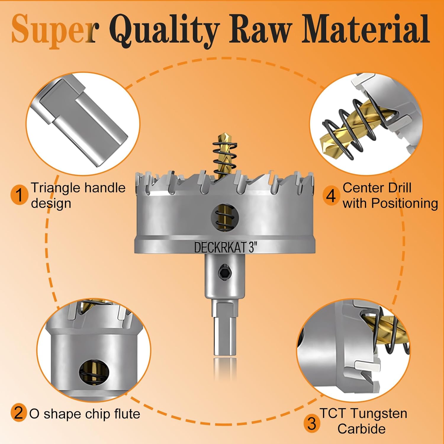 Slice through tough materials with precision using our premium 3″ TCT Hole Saw. The tungsten carbide tips and spring-loaded pilot bit ensure clean, accurate cuts in stainless steel, metal, iron, and plastic with minimal effort and maximum durability.