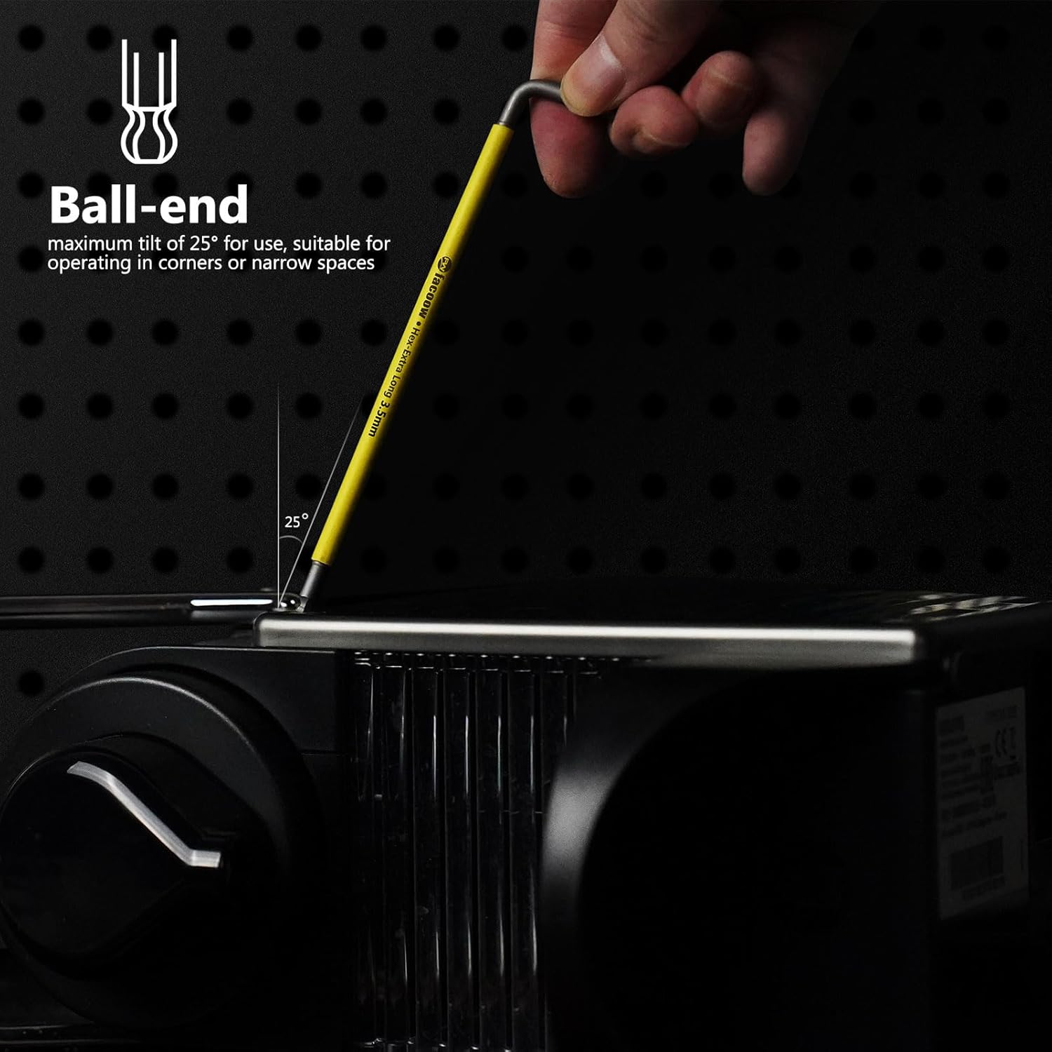 One feature that truly sets this hex key set apart is the ball end design on the long arm. When we needed to work at awkward angles – like accessing those nearly impossible-to-reach bolts inside an engine compartment – the 25° working angle was nothing short of revolutionary.