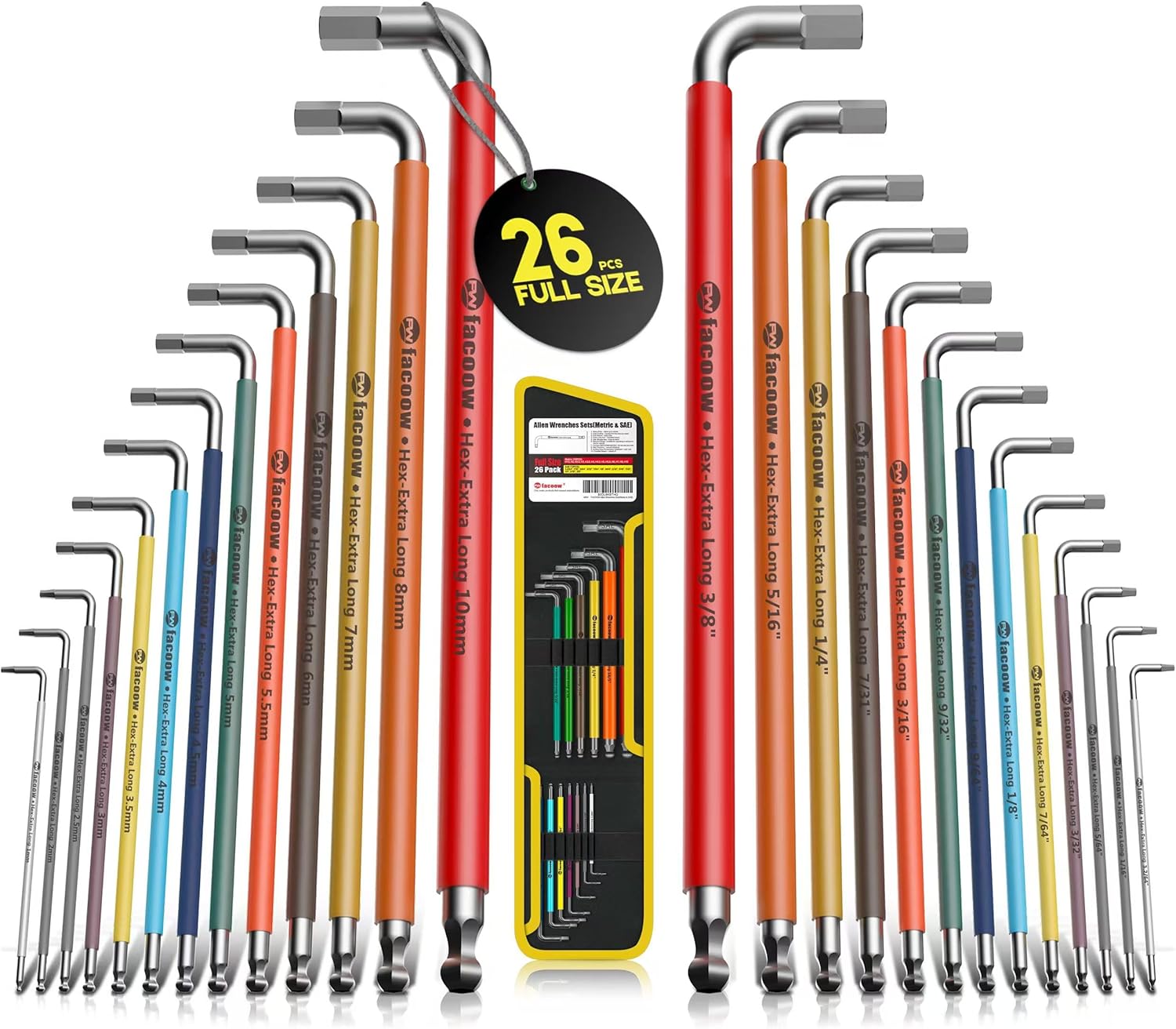 Complete your toolbox with our premium 26-piece Allen Wrench Set featuring both Metric & SAE sizes. The extra-long arm design provides superior leverage, while ball-end tips allow access to tight angles. Color-coded for quick identification and packed in a durable carry bag.