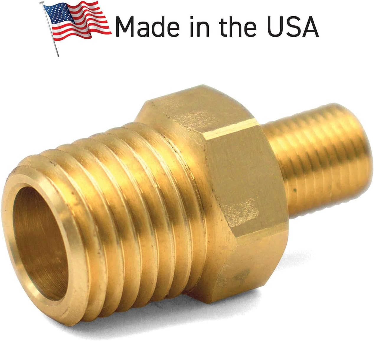 Precision-crafted US-made brass adapter seamlessly connects 1/4 NPT to Schrader valves. Upgrade your air tools with this durable, versatile connector for effortless tire inflation and improved air system performance.