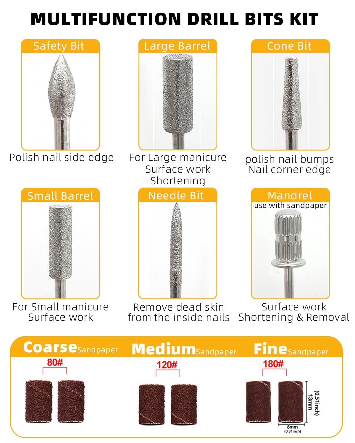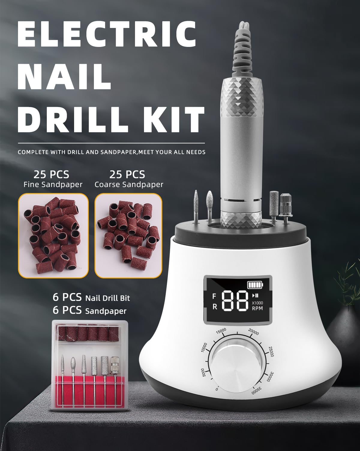 Unleash salon-pro precision with this powerful 35000 RPM electric nail drill. Portable, rechargeable, and equipped with LCD display and 56 sanding bands for flawless nail shaping, polishing, and acrylic/gel nail removal.