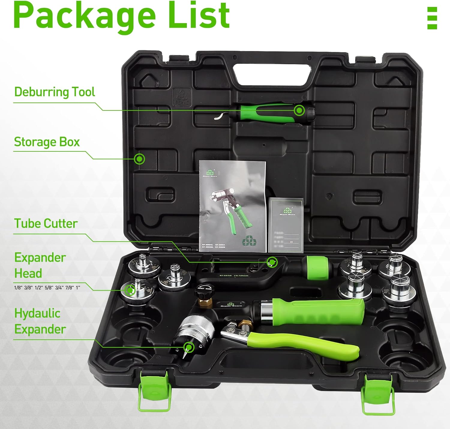 • Included Accessories: 7 Expander Heads, Tube Cutter, Deburring Tool