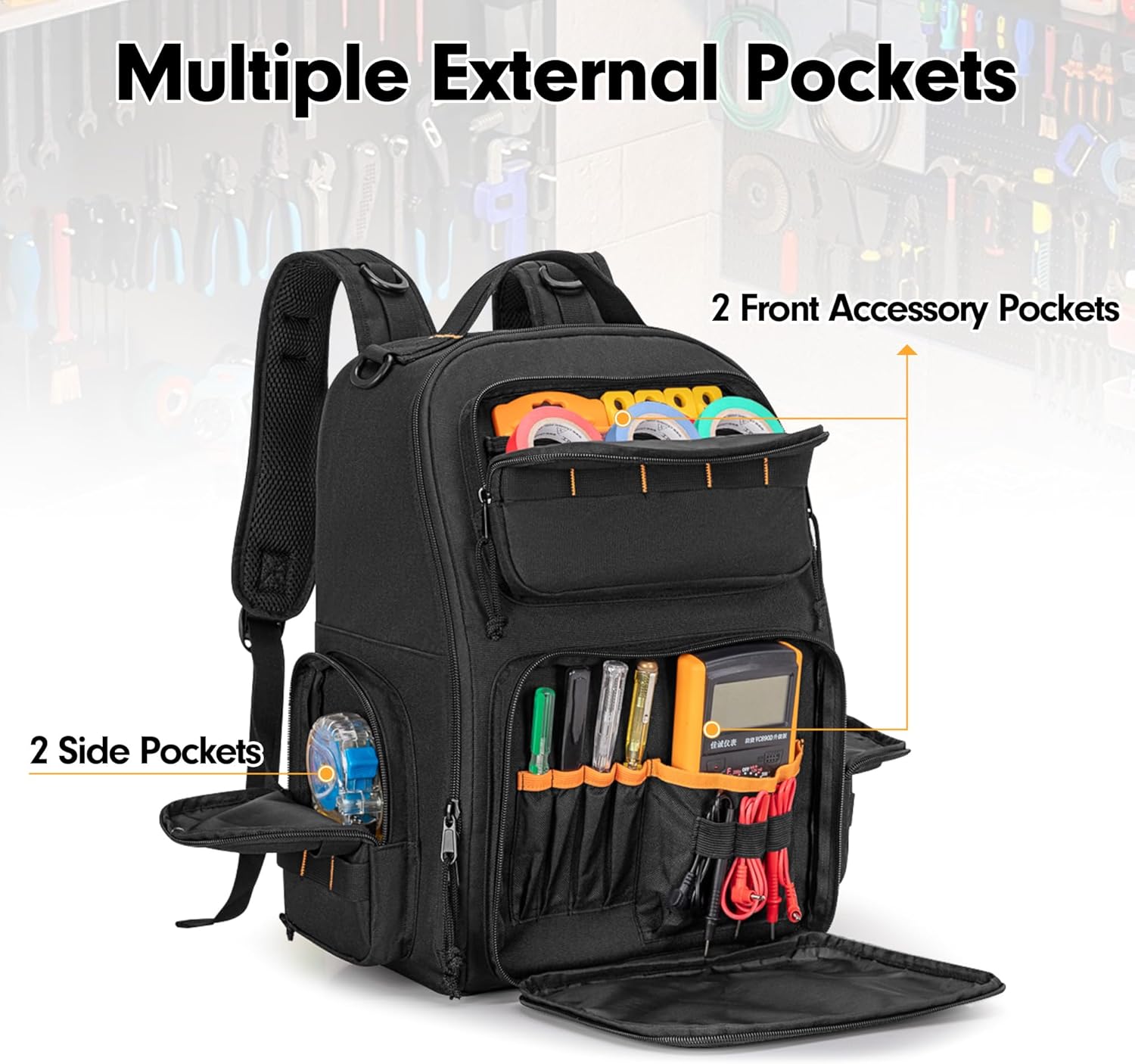 Engineered for professionals, this tactical tool backpack features a patented design with 3 dedicated zipper pouches, padded support, and robust organization for electricians, repairmen, and handymen who demand durability and efficiency.
