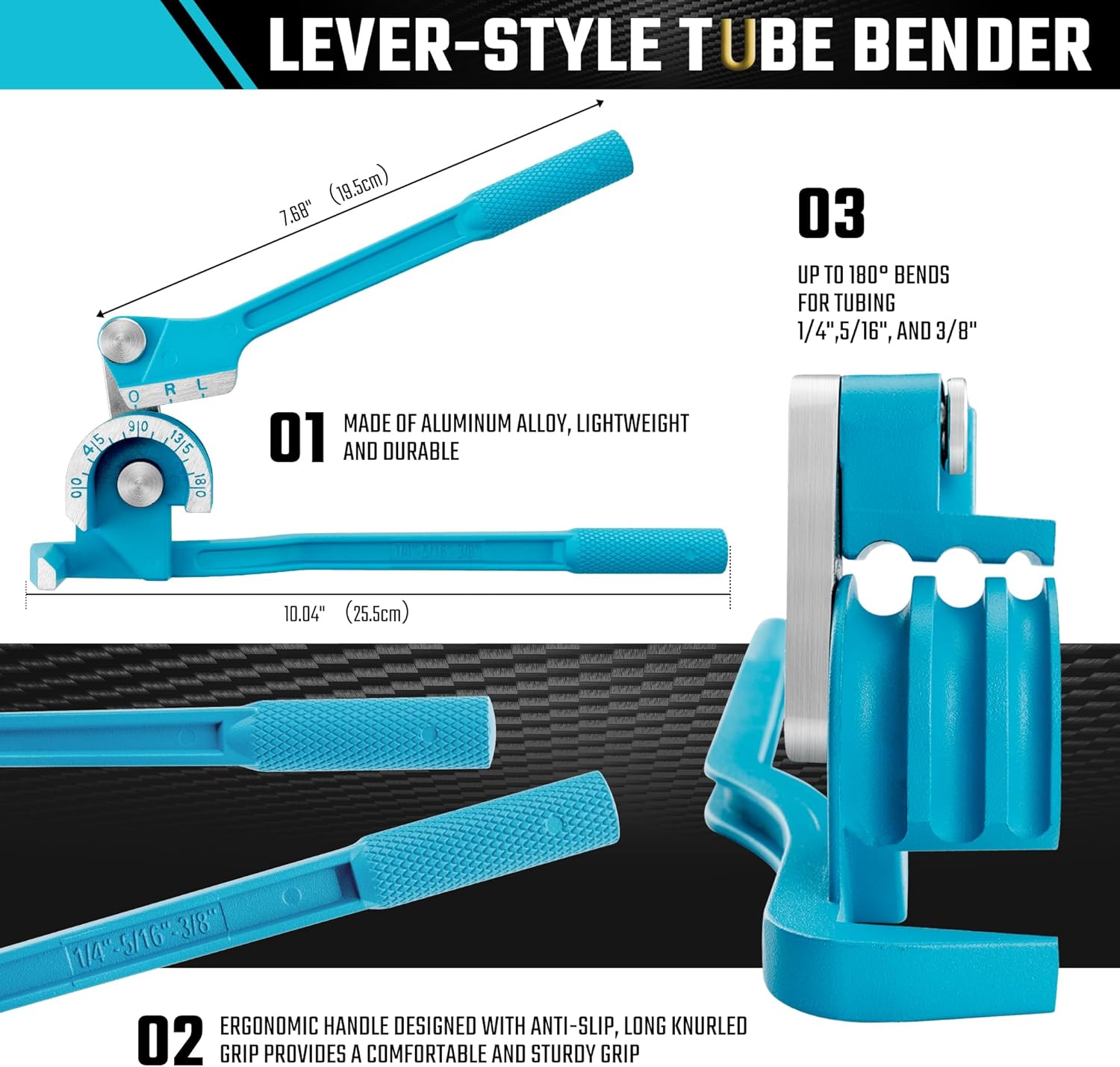 Precision meets versatility with the DURATECH 180° Tube Bender. Bend copper, brass, aluminum, and steel pipes from 1/4″ to 3/8″ with professional-grade accuracy and ease. 3-in-1 design for ultimate flexibility in your workshop.