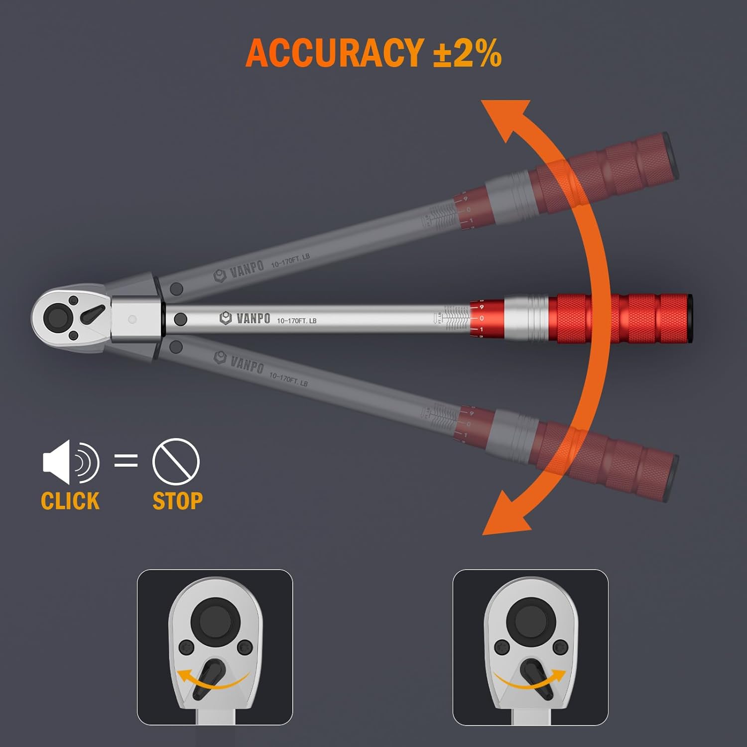 Why Professionals Choose This Adjustable Torque Wrench 10-170 Ft-Lb 1/2 Inch Drive with Interchangeable Head