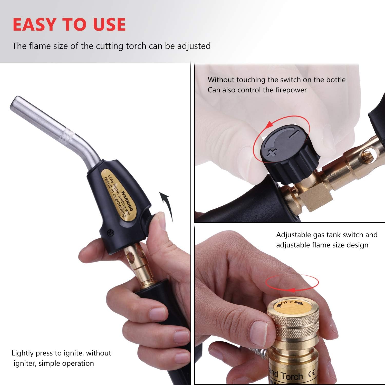 - Adjustable Flame Control: Precision valve allows fine-tuning from pinpoint flame to wide heating pattern