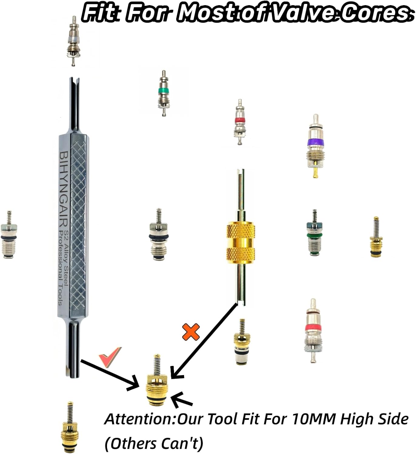 – Compatible Valve Types: Schrader valve stems