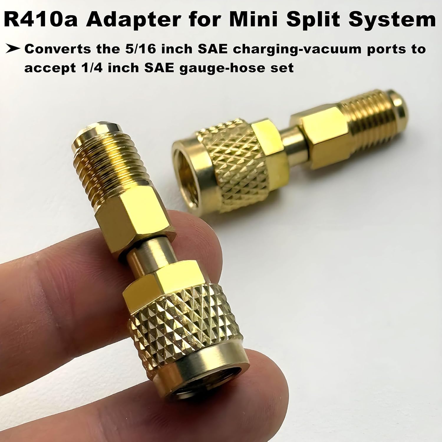 We tested these adapters with gauge manifolds from Yellow Jacket, Robinair, and generic imported sets. The 5/16″ SAE female side threaded perfectly onto our charging hoses every single time. On the system side, the 1/4″ SAE male flare connections seated properly on Mitsubishi, Daikin, LG, and Fujitsu mini split service ports without any issues.