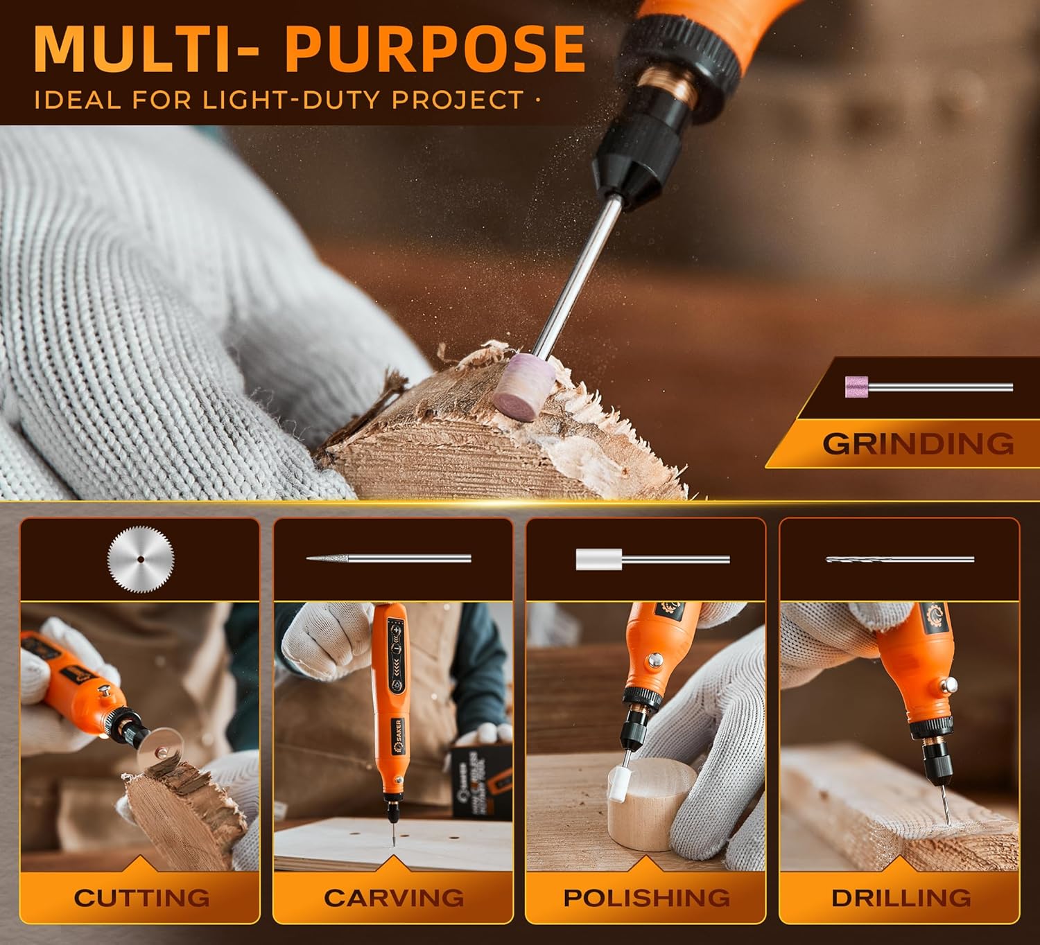 – **Metal**: Effective for light grinding, polishing, and detail work