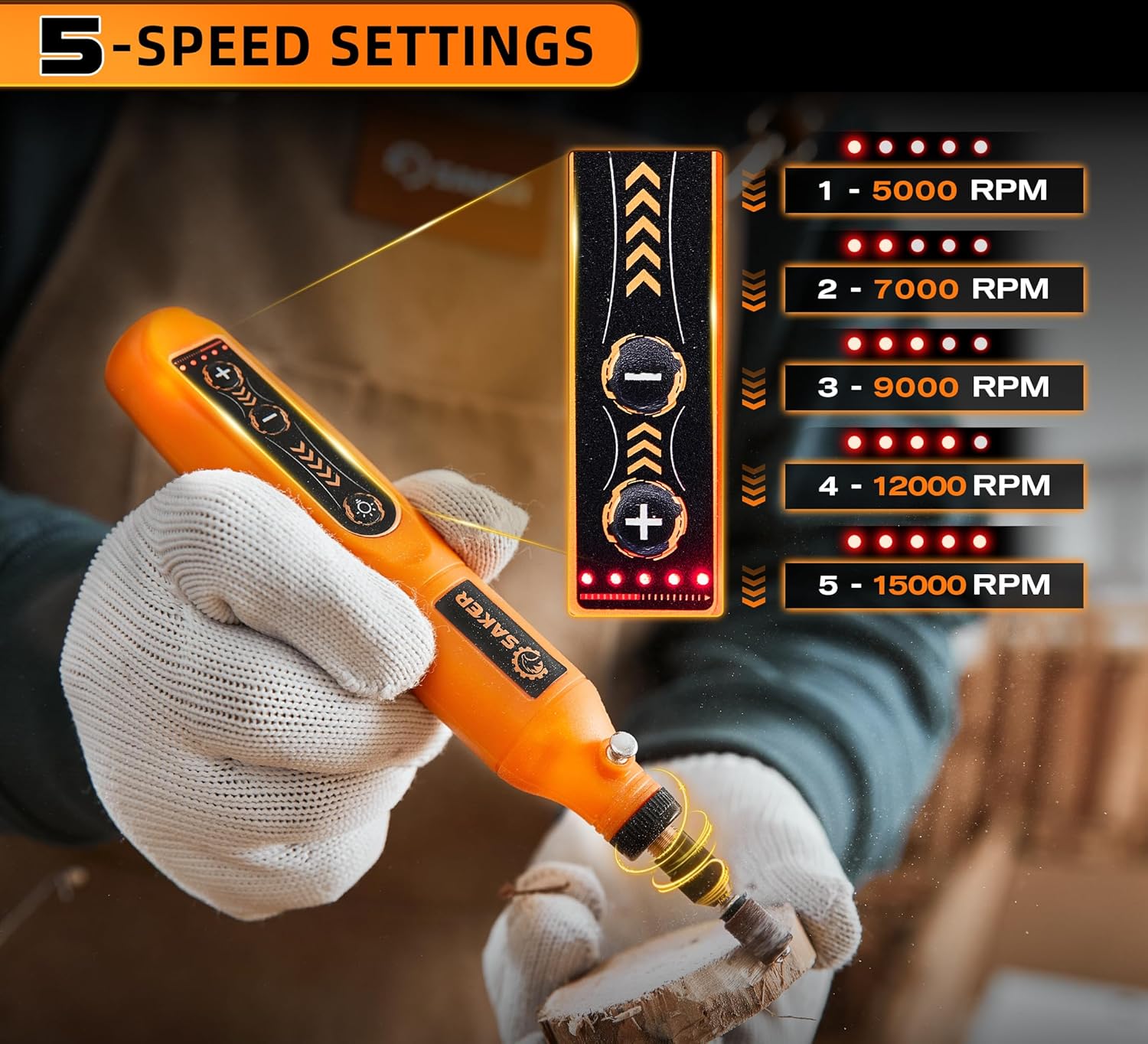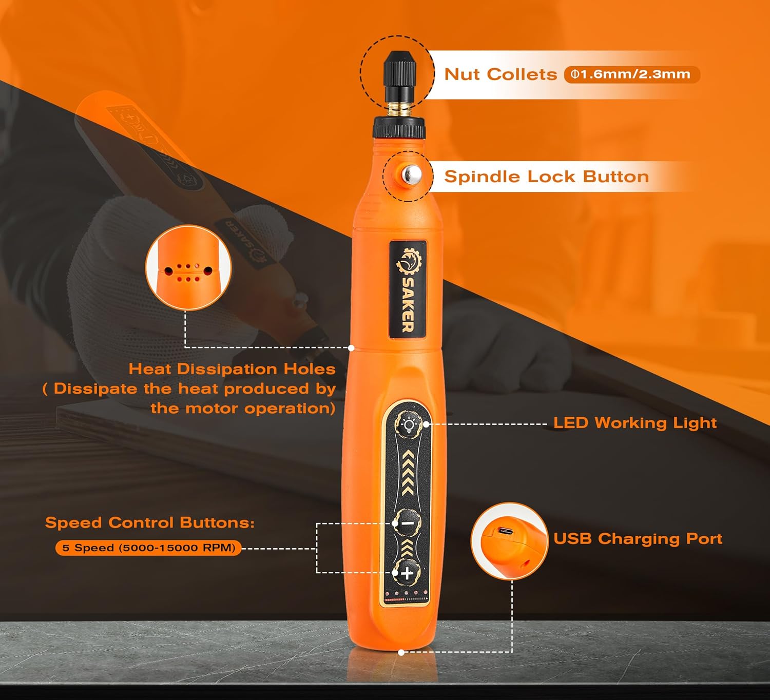 Unleash precision crafting with the Saker Mini Rotary Tool Kit. This versatile 3.7V cordless wonder offers 5-speed control for everything from engraving to polishing. Compact yet powerful—perfect for DIY projects and detailed work anywhere.