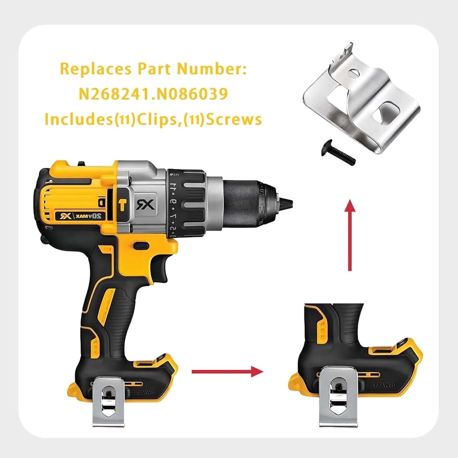 N268241 N086039 Belt Clips – 11pcs 304 Stainless Steel Drill Tool Clips for Dewalt 20V Power Tools