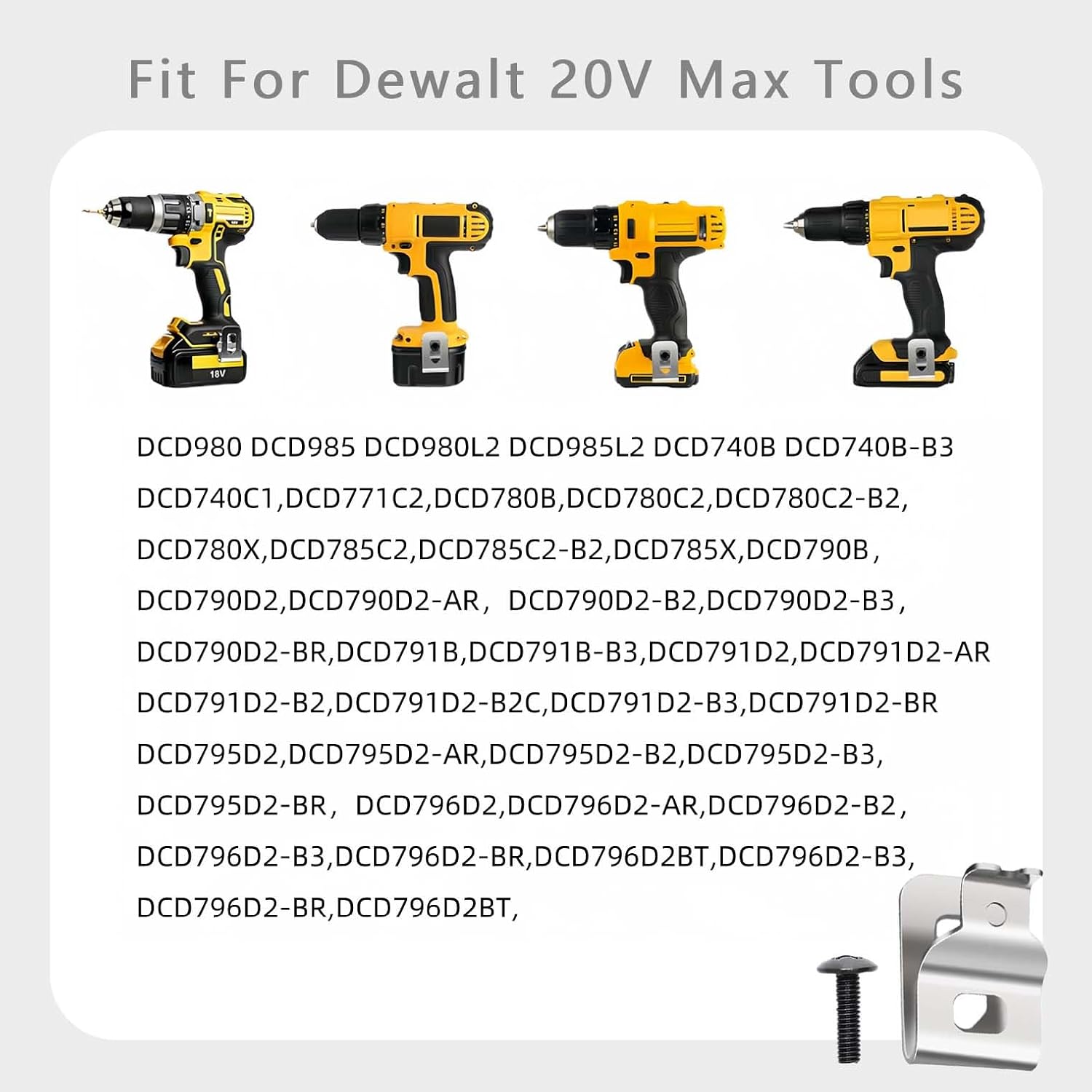 11-pack premium 304 stainless steel belt clips for Dewalt 20V drills. Durable construction resists rust and wear. Easy installation with included screws. Perfect replacement for DCD985, DCD980 series power tools.