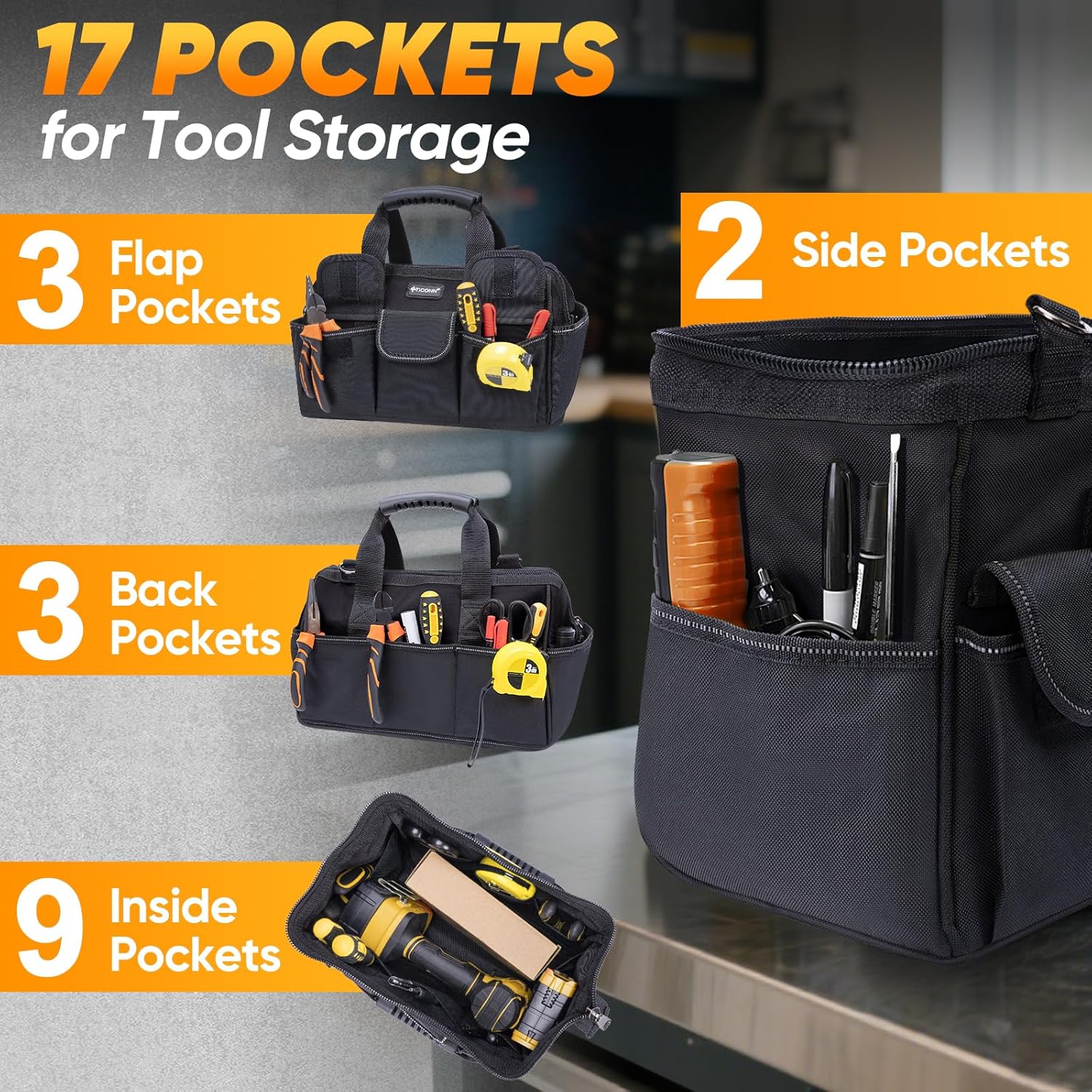 TICONN 12″ Heavy Duty Tool Bag Multi-Pocket Organizer Storage