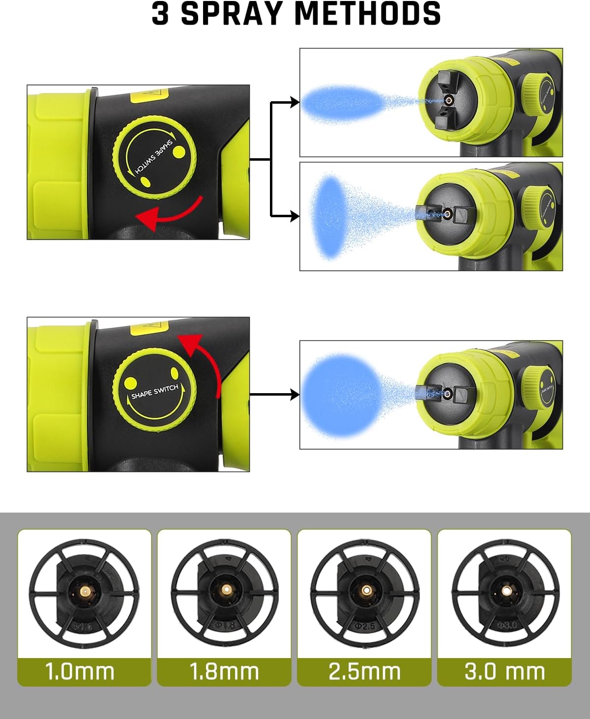- Versatile Nozzles – Comes with four nozzle sizes (1.0mm, 1.8mm, 2.5mm, and 3mm), making it suitable for a variety of paint viscosities.