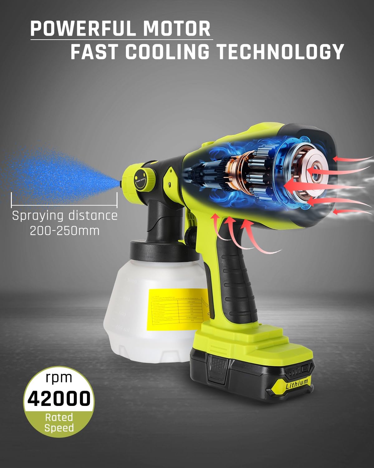 This sprayer features a cordless design compatible with a range of 18V batteries, ensuring you won’t be tethered to a power source. The upgraded 200W brushless motor not only minimizes noise but also maximizes performance, providing an impressive air flow of 160L/min.