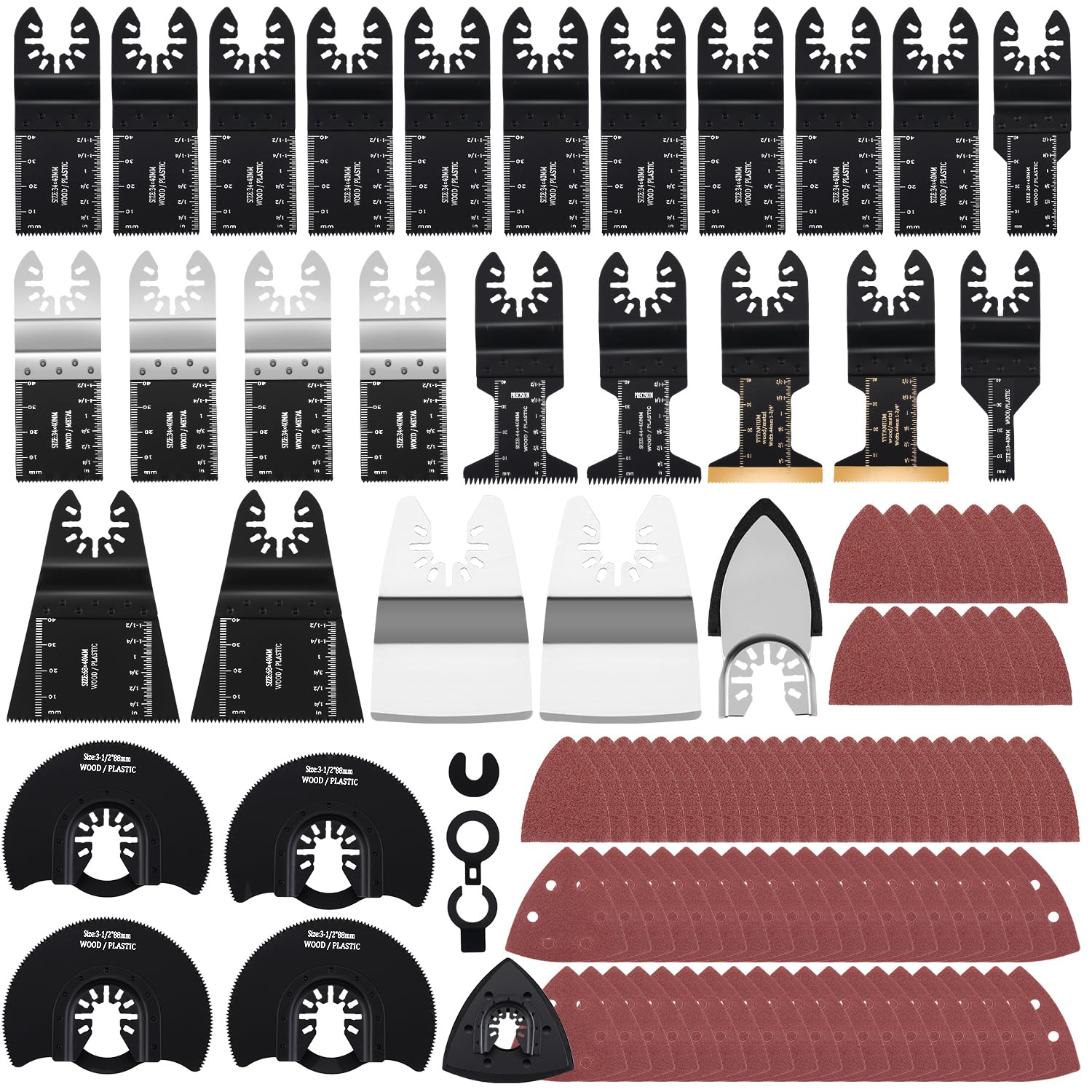 The 115PCS Oscillating Tool Saw Blades set is a comprehensive kit designed to cater to a wide variety of cutting needs. This versatile collection includes multiple blade types, suitable for woodworking, metalworking, drywall, and more. The universal saw blade interface ensures compatibility with most general-purpose vibratory tools, making it an essential tool for DIY enthusiasts and professionals alike.