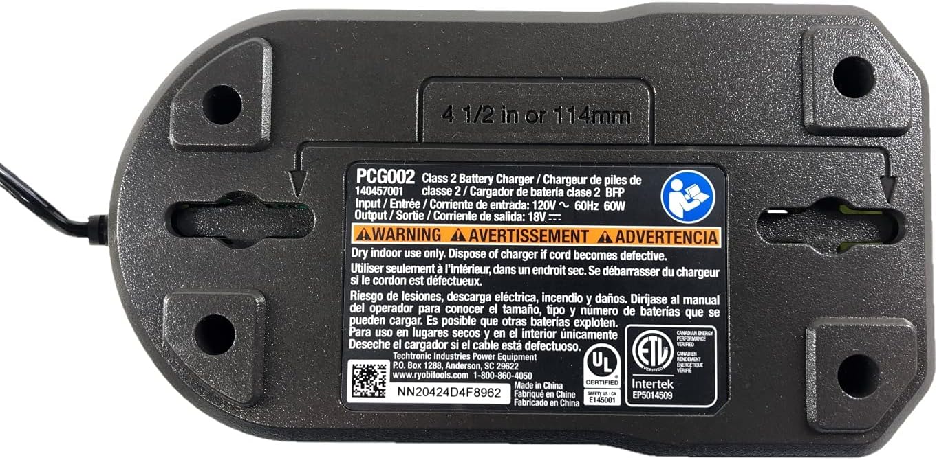 Product Summary: TTI 18-Volt Ryobi Charger PCG002, (NO Retail Packaging, Bulk Packaged)