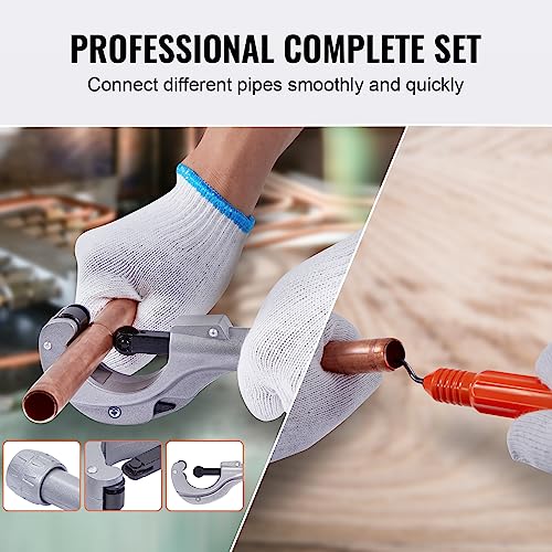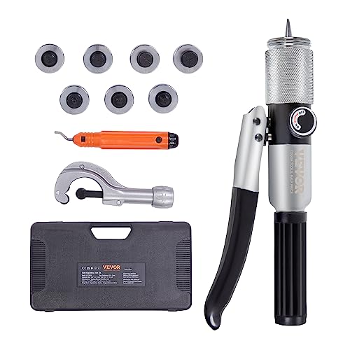 VEVOR Hydraulic Tube Expander delivers professional pipe expansion from 3/8″ to 1-1/8″ OD. Complete kit includes 7 expander heads, deburring tool, and cutter for copper, aluminum, brass, and soft steel pipes.