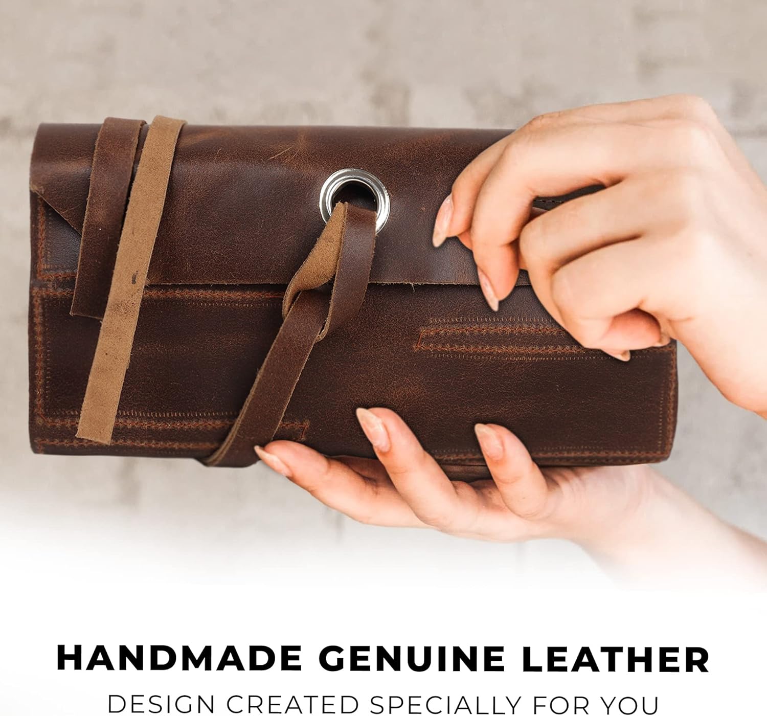 The choice of full grain leather—the highest quality tier in leather goods—means this tool roll offers:
