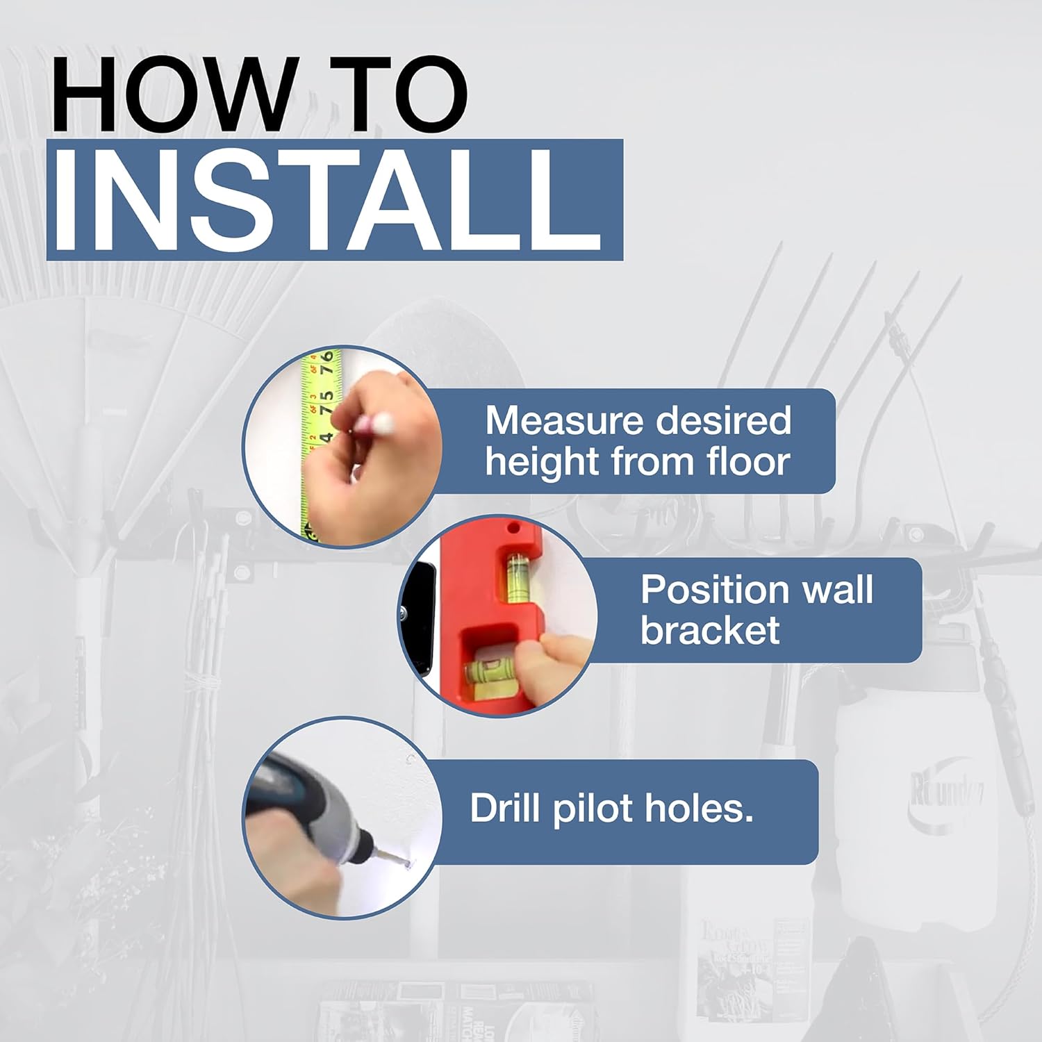 Reclaim your garage space with heavy-duty wall-mount storage that holds 300 lbs of tools and equipment. Steel construction keeps shovels, rakes, and gear organized and instantly accessible when you need them.