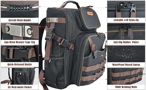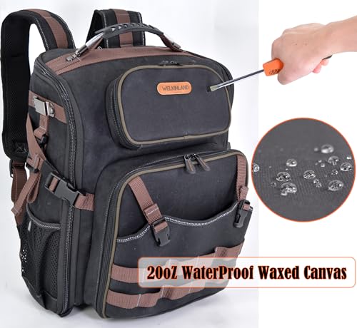 WELKINLAND Heavy-Duty Waxed-Canvas Technician & Electrician Tool Backpack