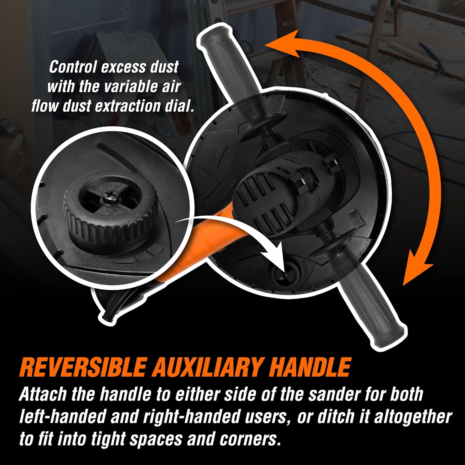 I highly recommend this product. I am a DIY novice but thru need had to repair a hole 24×60 inches after removal of cupboard from my kitchen ceiling. As the rest of the ceiling was textured we decided to remove it. (See That Kilted Guy on youtube) after research we decided we needed to get a tool for the job. As budget was tight decided on the WEN 6369 variable speed sander. This item is quite heavy and long and comes with a +-15ft hose and a shoulder strap. We hooked up the vac hose to a Rigid 35L shop vacuum and fitted both a bag and pleated filter(blue) to the inside to stop dust being blown around. I recommend using a 90 or 120 grit sanding disc to start with just to get used to it and use the variable speed at lowest setting. The motor on the head for the oscillator causes it to tilt. To overcome this it is better to get close to the ceiling and hold the machine parallel to the ceiling switch it on lift and let the brushes that surround the sanding disc come into contact with the ceiling. This gives nice even pressure and stops disc chatter. Dont put too much pressure or sweep to fast as this may overwhelm the vacuum and clog up the holes. The holes may sometimes get blocked but a quick palm slap dislodges it. The weight does give your shoulders a work out but there are two “feet” attached to the end of the wand. I tried using them hooked into my tool pouch and found that it gave moderate pressure relief to the shoulders. My solution was to do 30 minutes and give it a break. Long sweeps along a path give the best results. Once we started the mudding a whole new universe exploded upon me. See That Kilted Guy again for his vids on how to mud. It took two muddings with a final spackle just get it right. After each sanding we used an LED flashlight with beam held accutely to the ceiling to see the imperfections from the sanding. This helped to see where further sanding was needed. After three days I had the technique. The discs supplied have 8 holes in the middle and I would recommend only purchasing these as they feed a lot of powder into the vacuum tube. I have not used sanding discs without holes so cannot compare. The thought of trying to do this project by hand would be daunting especially with the amount of dust that is generated. I would say we captured over 90% of the dust in the shop vacuum. After three full days of sanding the bag was full of dust but the pleated filter showed no sign of dust. So you could get away with the bag only. The WEN 6369 is a great tool and indispensible if you plan on doing drywall.